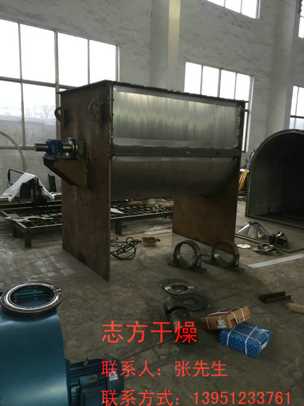 ◎螺带混合机一般用于粘性或有凝聚性的粉粒体的混合以及粉粒体中添加液体及糊状物料的混合,同时由于粘性物料清洗困难的特点,适用于产量大、不经常更换品种的场合混合。