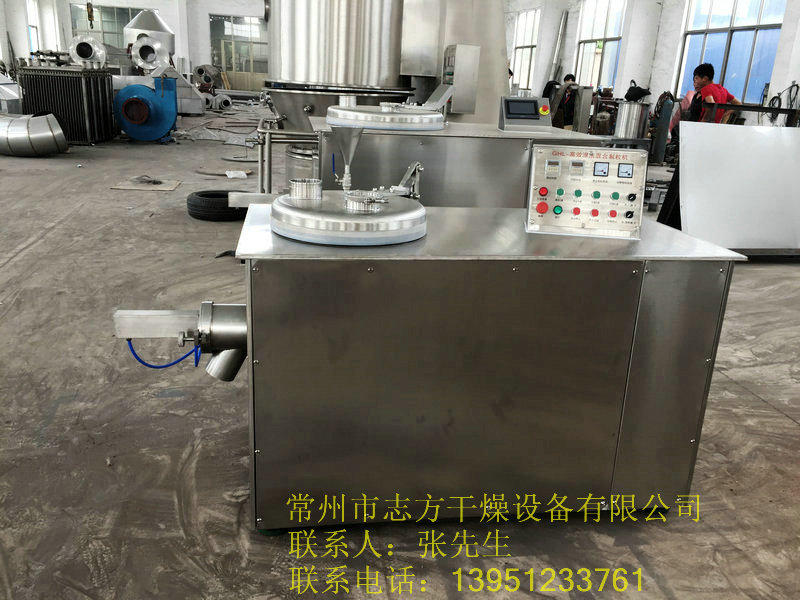 粉体物料与粘合剂在圆筒形容器中由底部混合浆充分混合成湿润软材,然后由侧置的高速粉碎桨切割成均匀的湿颗粒。